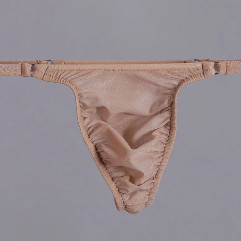 Unsere Exklusiv – Serie zeichnet sich durch einen erstklassigen Tragekomfort aus. Im Vergleich zu unseren regulären String Tangas hat dieser schöne Men String Tanga einen elastischeren Beutel und die Einfassung ist Dank der Zick Zack – Naht deutlich flacher bzw. unauffälliger. Auch der Übergang vom Beutel zum Steg, welcher durch den Po verläuft, ist nahtlos. Du wirst dieses einzigartig gute Tragegefühl lieben! Dieser String ist nicht nur ein idealer Badestring, sondern auch als Unterwäsche perfekt geeignet! Der schlichte toffeefarbene Stoff ist schön transparent.
