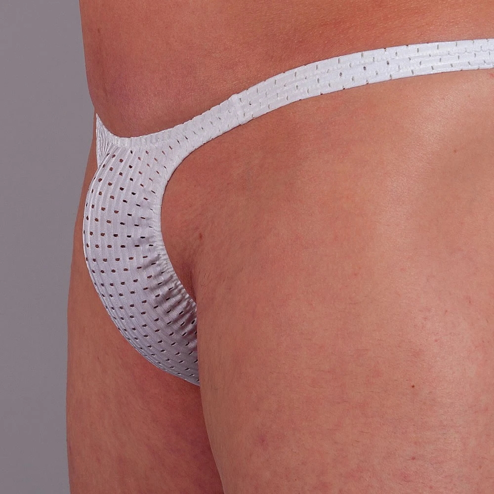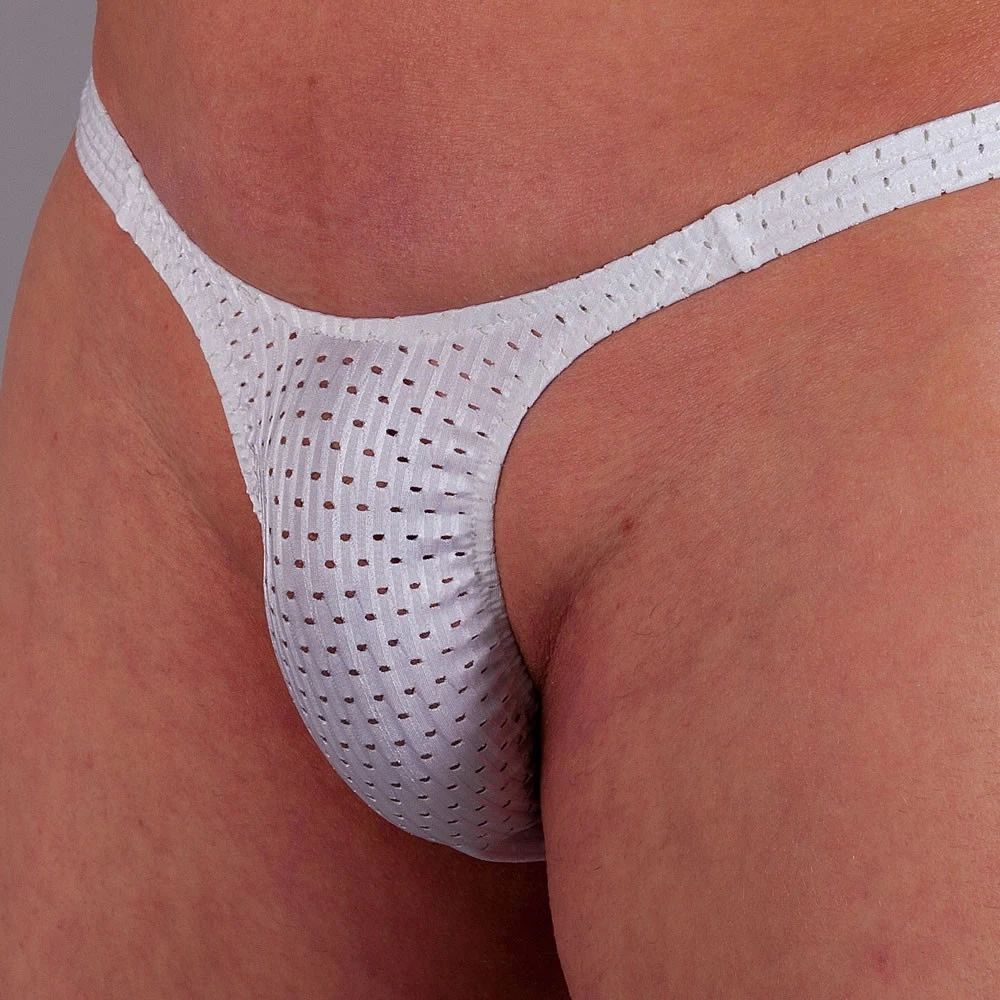 Unsere Exklusiv – Serie zeichnet sich durch einen erstklassigen Tragekomfort und einen perfekten Halt aus. Im Vergleich zu unseren regulären String Tangas hat dieser schöne Men String Tanga einen elastischeren Beutel und breitere Seitenbänder. Auch der Übergang vom Beutel zum Steg, welcher durch den Po verläuft, ist nahtlos. Du wirst dieses einzigartig gute Tragegefühl lieben! Dieser String ist nicht nur ein idealer Badestring, sondern auch als Unterwäsche perfekt geeignet! Das Modell ‚WhiteHole‘ erstrahlt in einem zeitlosen Weiß. Zusätzlich hat der Stoff Löcher, sodass die Haut schön durchschimmert.